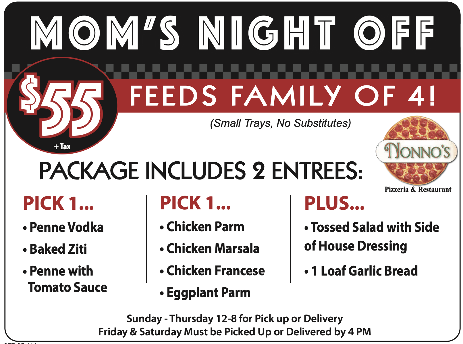 Large Pizza, 12 Garlic Knots, Small Antipasto, 2 Liter Soda $35.95 + tax!!